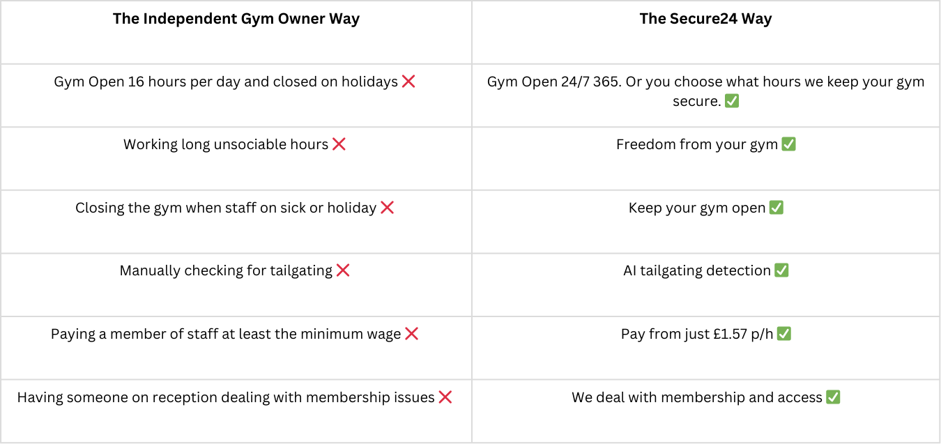 Manage your gym for just £1.57 per hour, saving costs while expanding your operational hours.